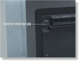 Restricted front cover access and optional button covers help prevent unauthorized printer operation.